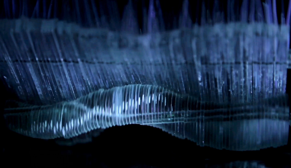 The work is inspired by nature, attempting to show the shape and motion of ice floating on the ocean. They combine a glass framework with a light effect and wave movement to give it a lifelike nature.